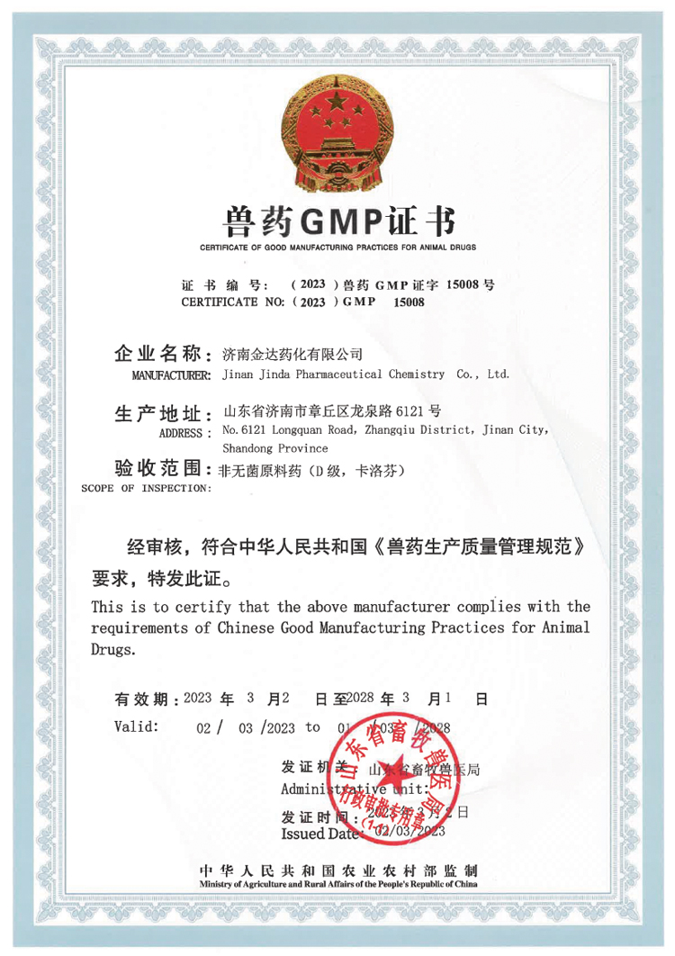 1)GMP符合性:兽药生产GMP证书
